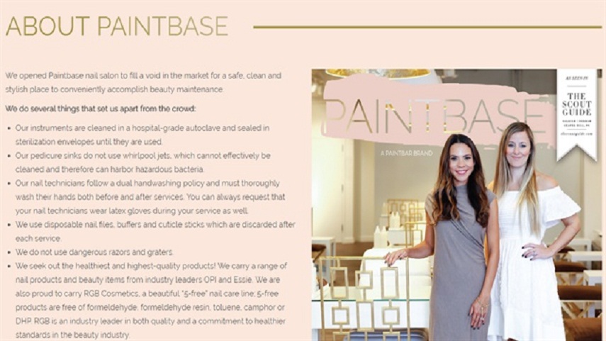 Paintbase Nails ở Raleigh, N.C. đã “tích cực” quảng bá việc tuân thủ các tiêu chuẩn vệ sinh của họ trên website salon