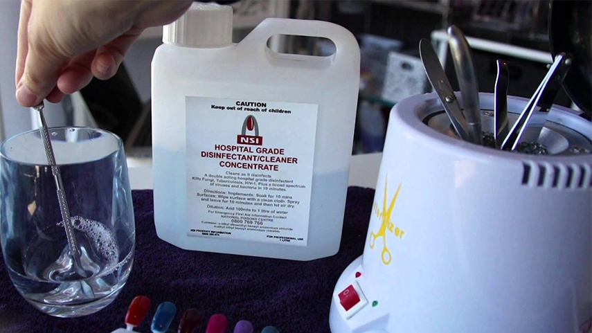 - Rửa và khử trùng các dụng cụ làm móng cũng như bồn/chậu ngâm móng.