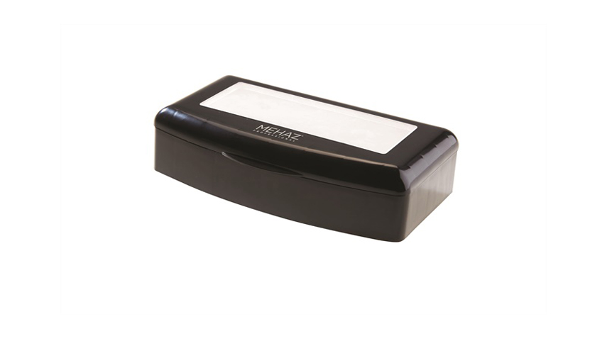 Khay khử trùng chuyên nghiệp (The Mehaz Professional Disinfectant Tray) khá rắn chắc và tiện lợi cho việc lưu trữ các dụng cụ, lưỡi dao và các loại giũa không xốp. Mặt trên có lớp kính trong suốt giúp việc lấy đồ đạc dễ dàng hơn.