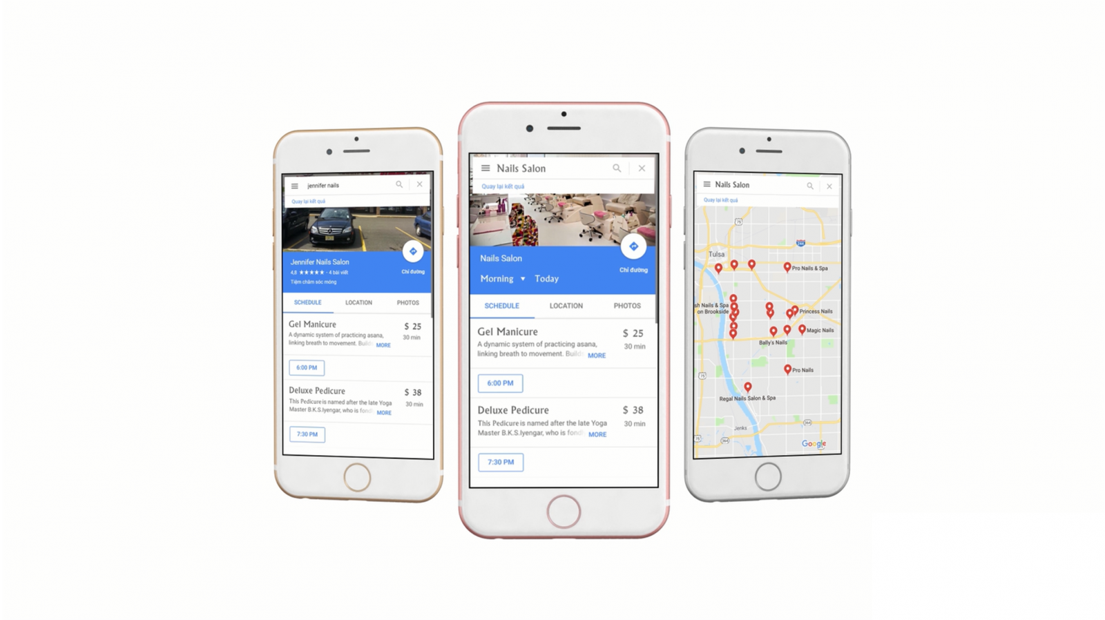 Sau nhiều lần thử nghiệm, Google đã chính thức cho ra mắt tính năng đặt hẹn ngay trên địa chỉ của tiệm tại Google Search. Đây có thể xem là bước cải tiến quan trọng trong xu hướng kinh doanh hiện đại, khi thu ngắn khoảng cách của quy trình tìm kiếm và đặt hẹn của khách hàng. Tính năng đó được gọi là Reserve with Google, viết tắt là RwG, cho phép khách hàng đặt hẹn trực tiếp từ Google mà không cần phải đăng nhập vào website của doanh nghiệp. Có thể hình dung một cách cụ thể với tình huống như sau, một người khách muốn đặt lịch hẹn Pedicure vào lúc 5 giờ chiều, vị trí trong khu vực cách nửa dặm nơi sinh sống. Thì lúc đó trên google.com/maps/reserve sẽ hiển thị các tiệm hiện đang có hoạt động trong khu vực gần đó cho người khách hàng này lựa chọn.