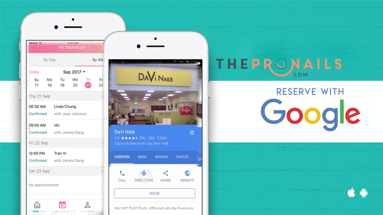 Reserve with Google và Thepronails.com chính là công thức hiệu quả để nâng cao kết quả hoạt động kinh doanh của các tiệm nail trong tương lai. Ngay hôm nay hãy trở thành những người dẫn đầu xu hướng kinh doanh mới này nhé!