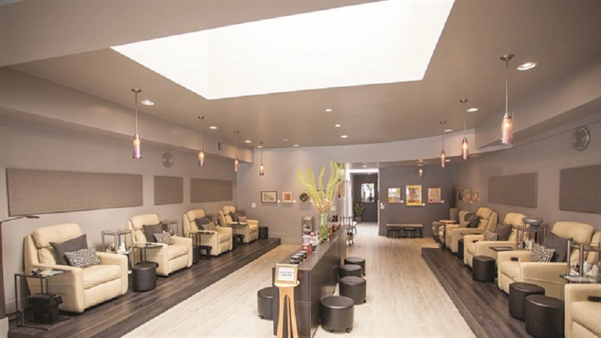 Cách trang trí của salon nghiêng về vẻ cổ điển và sang trọng với lớp đá lót bên ngoài là đá vôi, tường xám và những bộ ghế dài màu tím ở khu vực phòng chờ. Các khách hàng được khuyến khích thư giãn và cùng trò chuyện, kết bạn với mọi người khi chờ sơn móng khô hay chờ bạn bè làm móng xong.