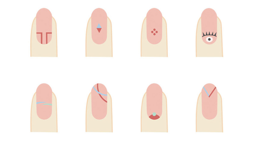 Menu nghệ thuật móng có thể được thiết kế theo nhiều hình thức khác nhau, tùy thuộc vào mục tiêu của tiệm và cách nhận diện thương hiệu. Chẳng hạn, Sundays salon minh họa menu bằng 6 đến 8 mẫu vẽ đơn giản, được cập nhật theo mùa và có thể tùy chỉnh theo lựa chọn màu sắc của khách hàng. Trong khi đó, Color Camp trưng bày menu này ngay trên tường trong salon của họ. Khách hàng có thể lựa chọn một trong những thiết kế phức tạp có sẵn hoặc tạo ra tác phẩm riêng cho mình bằng cách kết hợp họa tiết đơn giản như kiểu Pháp, nửa vầng trăng, ombre với phụ kiện bổ sung gồm đinh tán, giấy foil, kim tuyến.